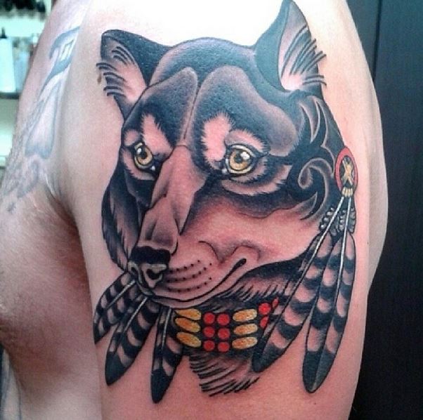 caroline tribal wolf tattoo feathers